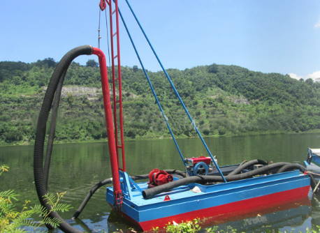 該設(shè)備為射吸式抽沙船,也有稱作擱邊船或者抽沙機(jī)。工作原理是水泵沖擊沙層,沙泵將揚(yáng)沙抽上來,然后通過管道輸送到岸邊或者運(yùn)輸船上。 適合環(huán)境:河床硬度小,沙子塌方情況好,松軟,泥土含量少的地方。