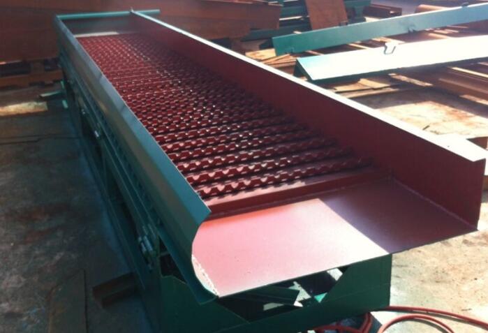 蠕動溜槽是新發(fā)明的砂金礦選金溜槽,是溜槽的一種類型。蠕動溜槽在原來鼓動溜槽的基礎(chǔ)上經(jīng)過多年的改進,不斷完善的砂金礦選金溜槽??苫厥詹煌螒B(tài)的金。主要作用原理就是用溜槽底板的特定蠕動克服了溜槽板結(jié)的難題,使重選性能差的金(就是薄皮金、細粒金等)回收率提高的設(shè)備。