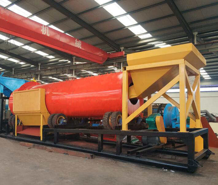 砂金洗礦機(jī)利用旋轉(zhuǎn)的圓筒和內(nèi)部的刮板以及物料中自有的卵石和巖石來分解粘土,塊狀物和軟氧化物。洗礦機(jī)的圓筒慢慢地旋轉(zhuǎn),類似于一個(gè)洗衣機(jī)。粗細(xì)不同的物料還有水同時(shí)在一起翻滾攪動(dòng),把有用礦物從泥性土壤,粘土中釋放出來。