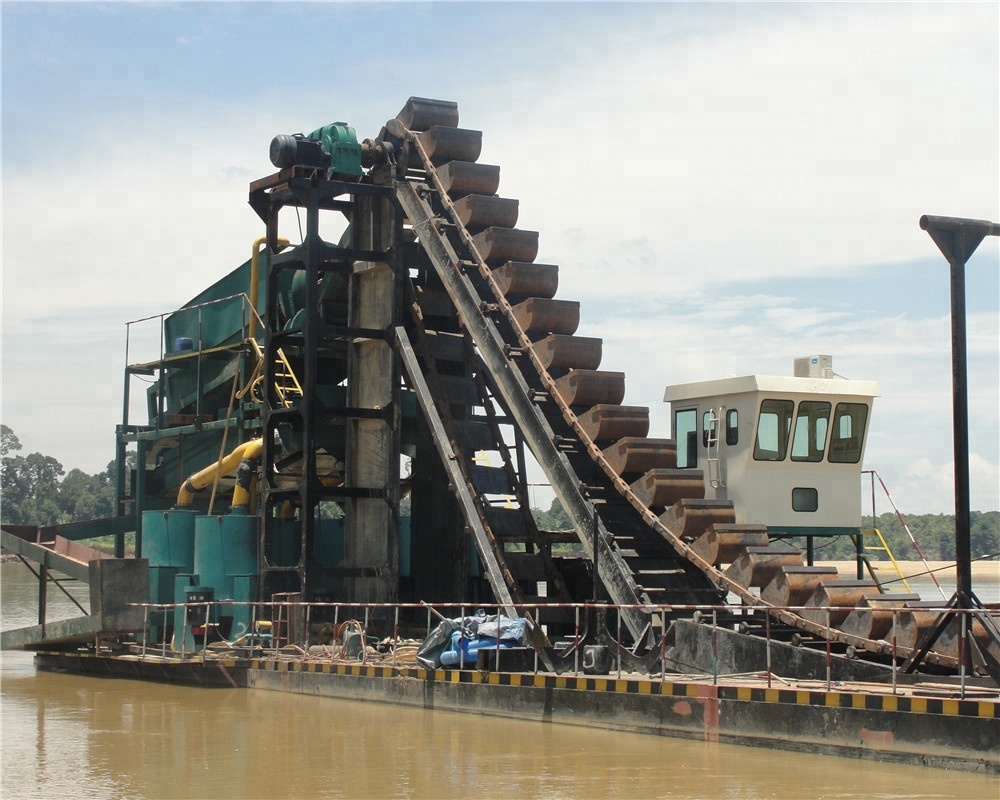 挖斗淘金船是本公司主打產(chǎn)品之一,本設(shè)備是鏈斗式的挖掘機械,可同時完成采掘、篩選、清洗、分級等工藝。,配備動力為柴油機或發(fā)電機組,能進(jìn)行多沙石料的篩分、沙金洗選等工作。